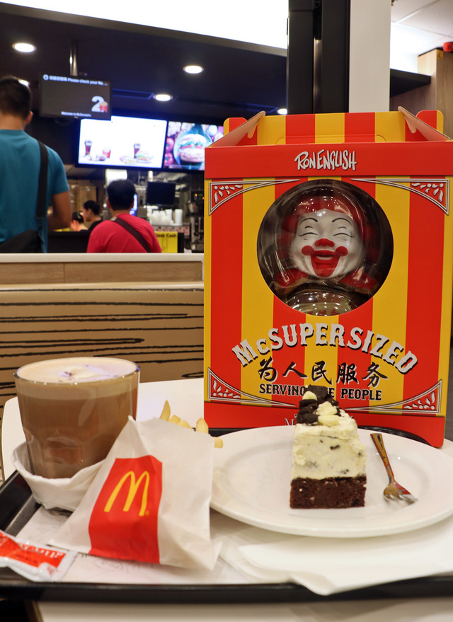 說起街頭藝術,Ron English於近代可以說得上是舉足輕重的人物,這位油畫功力深厚的藝術家。被譽為21世紀最具影響力的 Pop Artist 之一的 Ron English, 以惡搞流行文化見稱的 Ron English,今次當然會帶來他的一些代表作展出,好像《Supersize》(肥版麥當勞叔叔)、《Cereal Killers》(肥版Tigers)等等,而今次將展出一系列以香港街景作背景作創作而成的油畫,主角仍然是肥版麥當勞叔叔,兩者結合的確非常特別。當然少不了招牌大型公仔、油畫作品,惡搞煙盒、Darth Vader、Mario等等,展品數量不少。不禁回想起,2004年Ron English的作品(與他自己),於紀錄片《不瘦降之謎》(Supersize Me)亮相的畫面。