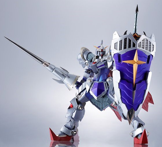在《SD鋼彈外傳》系列有著大人氣的「騎士鋼彈(騎士ガンダム)」機體這次將以"METAL ROBOT魂"系列,以"真實版本(リアルタイプVer.)"來立體商品化了啊!在故事設定裡面「騎士鋼彈」是伴隨流星降臨騎士世界的救世主,雖然他失去記憶,卻擁有高強實力,真實身份是武者世界中、與武者頑馱無匹敵的強者「武者頑馱無真惡參」,他因為野心欲謀奪秘寶「銀之盾」,最後被神秘落雷擊中轉移到另一空間。
