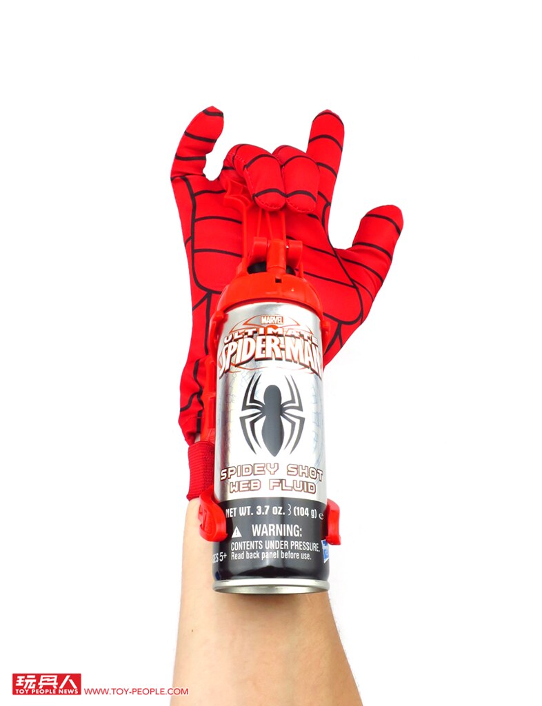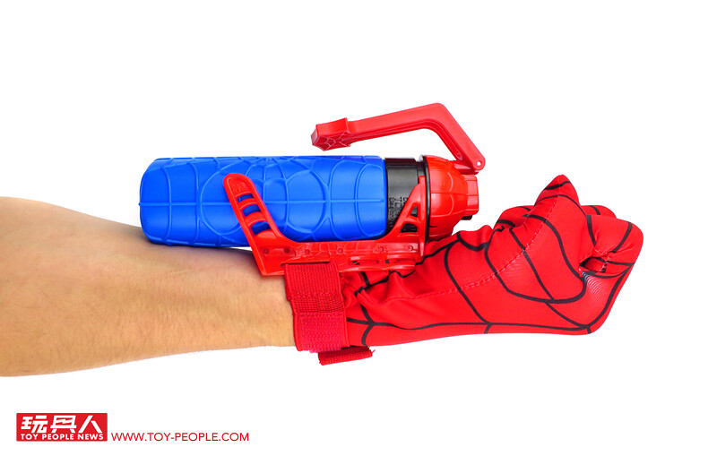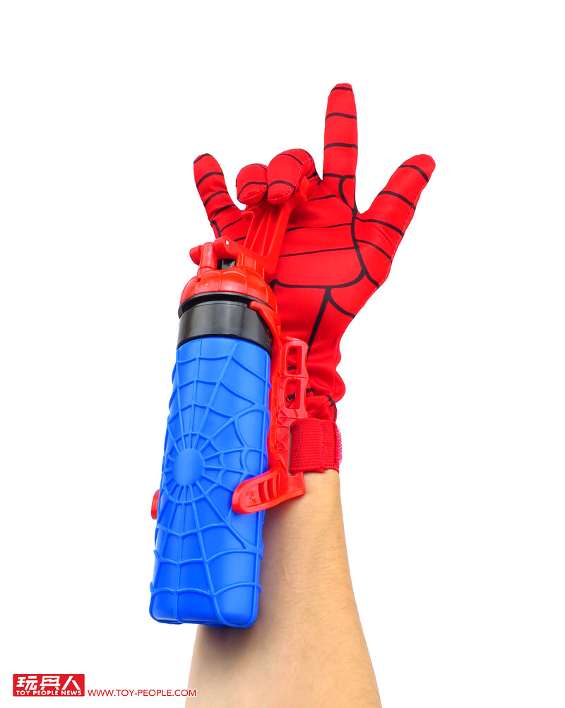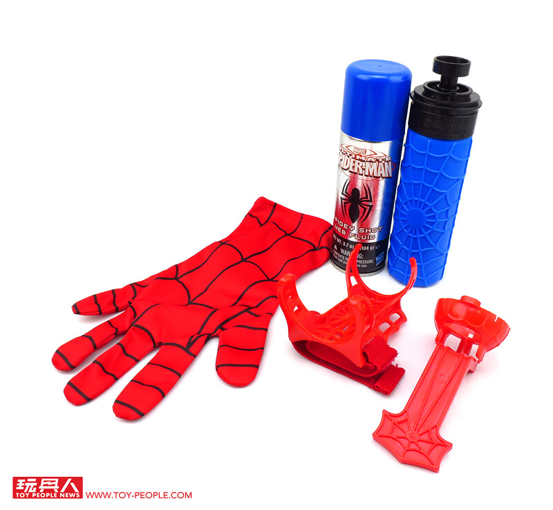 ▼ 內附一隻蜘蛛人手套、水瓶、蜘網噴罐及手腕固定座和扳機。