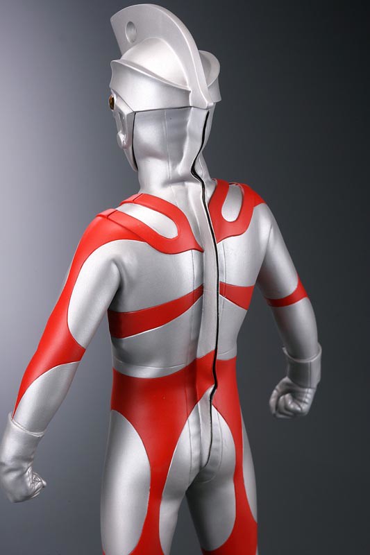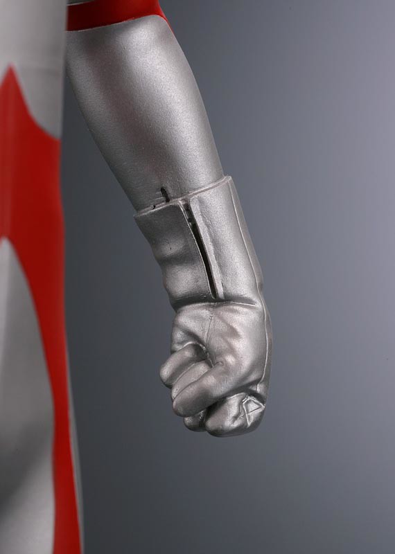 這次將劇中寫實的造型來製作,原型製作交由擅長真實風格的木下隆志老師執行,劇中眼睛部份會發光的樣貌與胸口訊號標誌處來採用透明材質製作,身體比例上當然也是以當時特攝劇集以人穿上道具服裝的比例來表現,服裝上面完全再現當時劇中道具服裝的布料皺褶等等多處細節,無論是整體造型或是比例都依照寫實風格來完成,喜愛《超人力霸王》系列的玩具人可以參考一下歐!