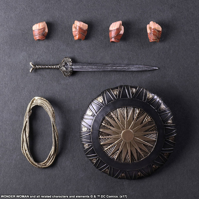 「PLAT ARTS改 神力女超人」部份造型沿用了已發售的《BVS》版本「PLAT ARTS改 神力女超人」,而頭髮、表情皆使用全新的造型製作,整體色調也更加明亮。軟材質製成的頭髮、裙子讓可動範圍更加寬廣,能夠再現劇中魄力的動作表現,配件中附有「真言套索」以及全新造型的「劍盾」!