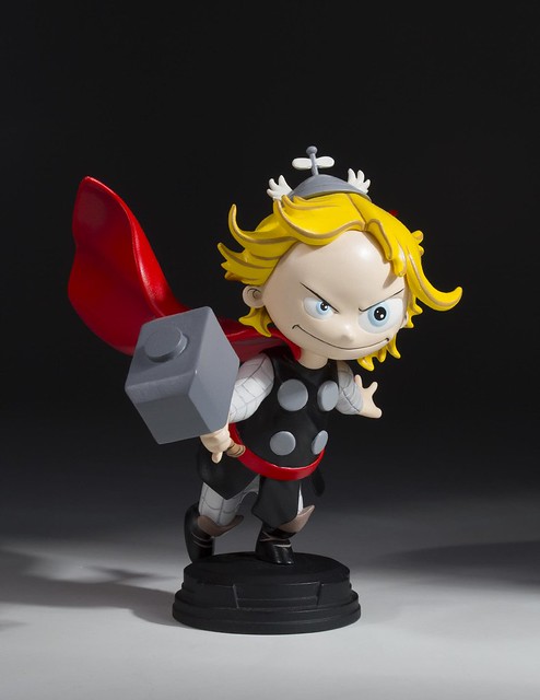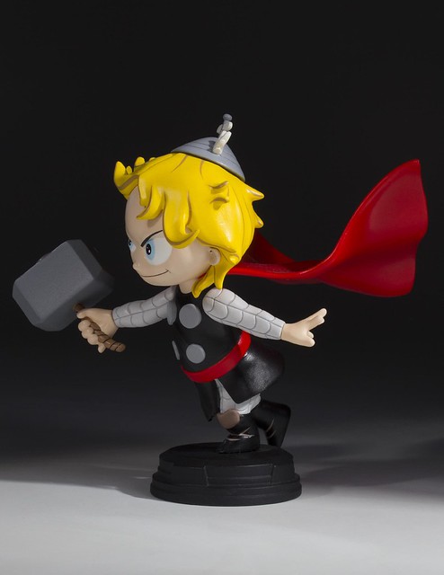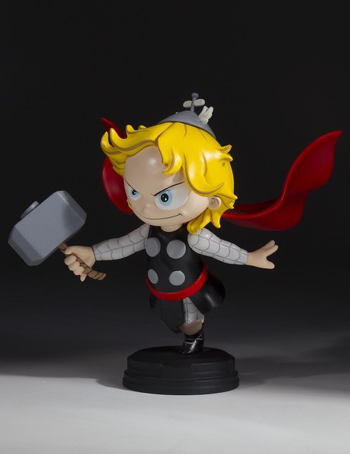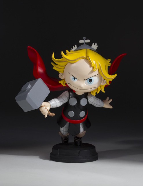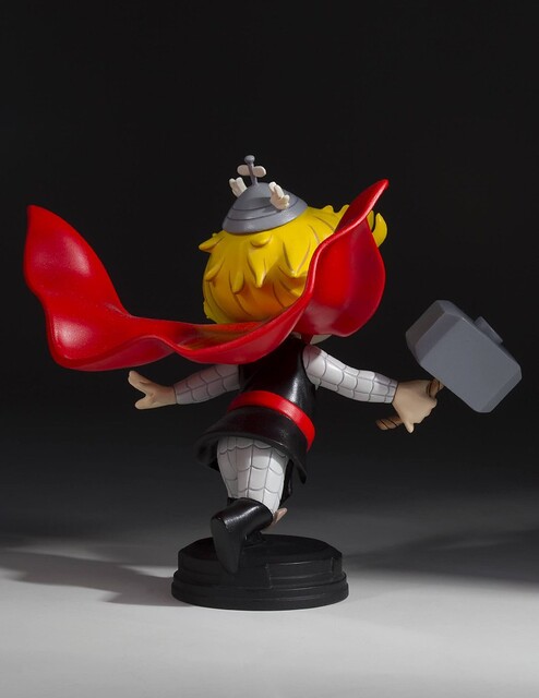 繼推出了漫畫風格強烈的鋼鐵人、美國隊長、死侍、星爵、樹人格魯特與火箭浣熊、萬磁王等Q 版作品之後,Gentle Giant 公司又將推出最新的雷神「索爾」(Thor)的全身雕像作品,可愛的風格搭配誇張的表情實在是太歡樂啦!喜愛Q 版風格超級英雄的玩具人別錯過囉。