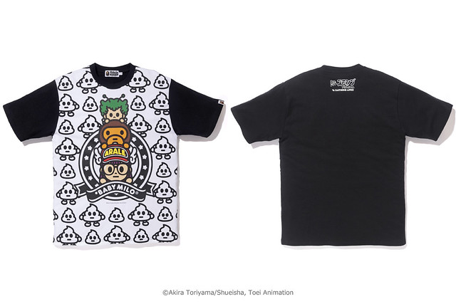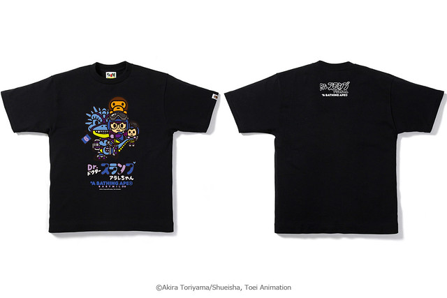 日本知名的潮流服飾品牌「A BATHING APE」,宣布將與知名的動畫、漫畫作品《怪博士與機器娃娃》聯名合作,推出一系列以主角“阿拉蕾”為主題的服飾,將推出能夠一秒COSPLAY阿拉蕾的創意造型連帽外套與T恤,還有多款聯名主題圖樣T恤。