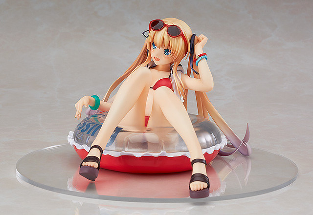 「澤村·史賓瑟·英梨梨 泳裝Ver.」的造型同樣來自 深崎暮人老師全新繪製的插畫,將英梨梨纖細嬌小的身軀與可愛的泳裝立體化!透過細膩的塗裝,把原畫中臉頰頭髮等處特殊的筆觸與陰影色塊呈現,泳圈部份則以透明材質至製作,打造出充寶氣體的模樣!商品中還將附上特典「深崎暮人 全新插圖明信片」。