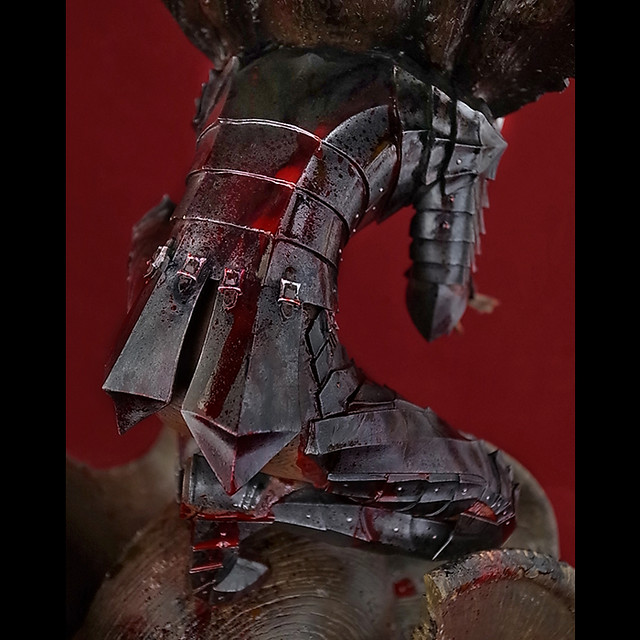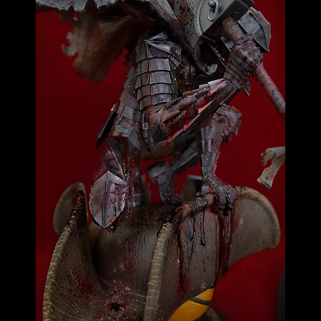 而狂戰士甲冑十分漆黑,加上血跡等舊化十分霸氣,披風的飄動感相當優異,重現狂戰士的敏捷身手,精心塑造的破爛舊化也十分令人激賞!這次將繼續推出【創業20週年記念版】限定推出只有30個,在本來底座幽靈船的骷髏符號也改為金色,這次的"予約特典"則是將底座骷髏頭眼部的部份加上了「施華洛世奇水晶」,將於art-of-war官網在2017年6月8日~7月10日期間"限定受注"生產發行,喜愛《烙印勇士》作品的玩具人可以參考一下歐!