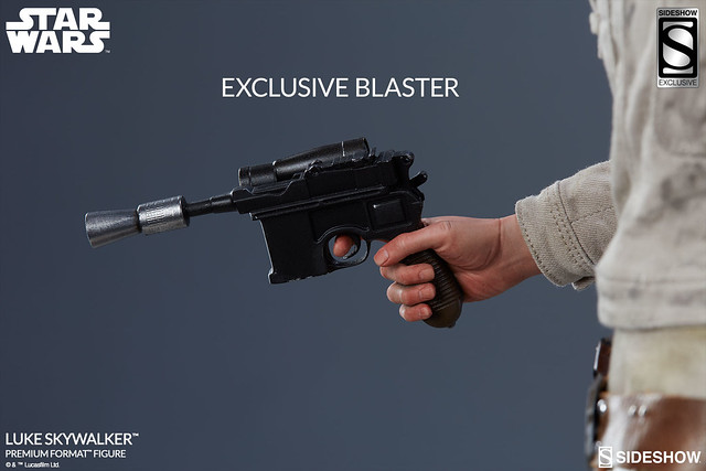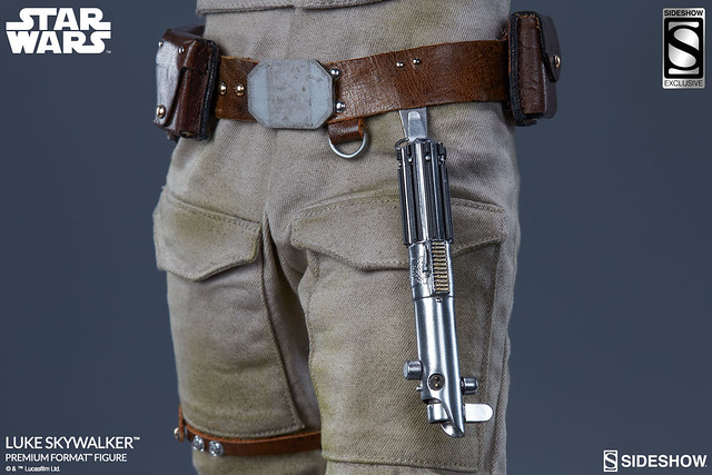 而在武器配件的部分,除了有被配掛在腰間的雷射手槍(Blaster Pistol)之外,更有附上一把內建置LED 發光機制的藍色光劍(Lightsaber)。值得一提的是,這次Sideshow Exclusive 的限定版本更是附上了一把關閉狀態的光劍配件,以及右手拿著Model 57 雷射手槍的可替換配件;有興趣的玩具人別錯過囉。