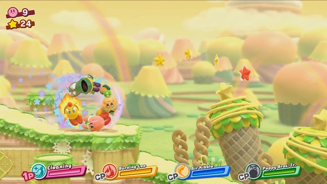 從遊戲預告中得知,此作的卡比依然能運用他可愛的大嘴巴吞下敵人獲取能力,讓卡比得到劍、炸彈等多樣武器!此外這款《星之卡比》新作還能支援 4 人同時遊玩,能與夥伴們協力闖關,甚至還能使出強力的合體技擊敗敵人、通過地圖上的障礙!