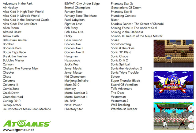 最重要的當然就是遊戲部份啦!Sega Genesis Flashback 除了真的能使用遊戲卡匣外,同時也內建了多達 85 款遊戲,當然也包括了最經典的「音速小子(Sonic)」、「戰斧(Golden Axe)」、「夢幻之星(Phantasy Star)」、「真人快打 (Mortal Kombat) 」...,全都能一次擁有!