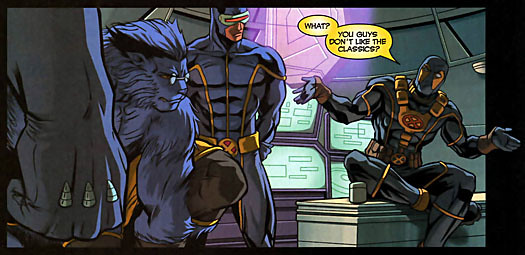 這款死侍的服裝真的別有一般風味啊~比起經典的紅黑、或是「X-Force」帥氣的黑白服裝,這款服裝是來自於漫畫《Cable & Deadpool》,由於死侍一直想加入X 戰警,所以藉著穿著一樣的制服來說服自己和X 戰警們自己是他們的一員;這套服裝的線條跟獨眼龍(Cyclops)幾乎一模一樣,但死侍多了些道具、裝備。