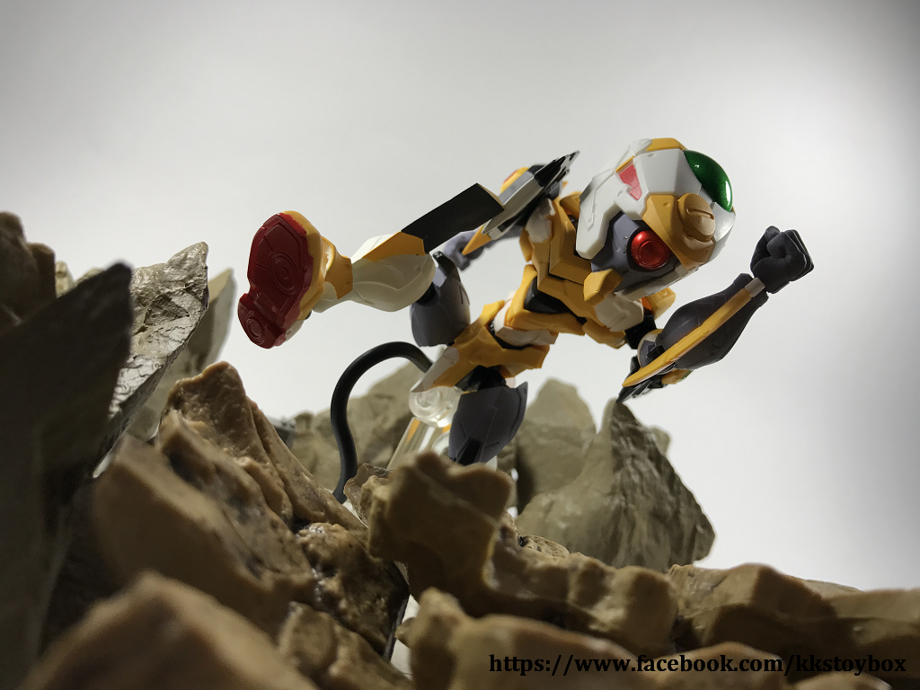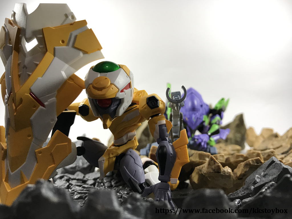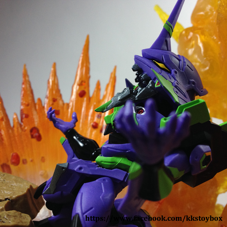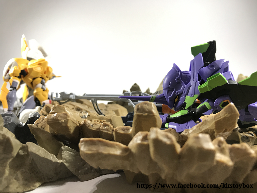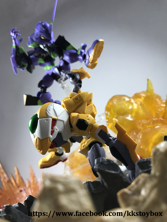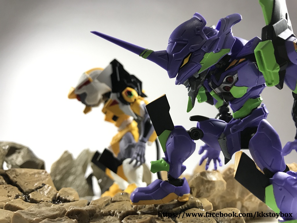 3、連動式地地臺非常有趣,可玩度很高。之前因為只有一臺初號機,地臺無法連動,感受不到其樂趣。這次發現,地臺能夠立體組合,再加上三種長度的支架,讓玩具擺設的自由度非常高。