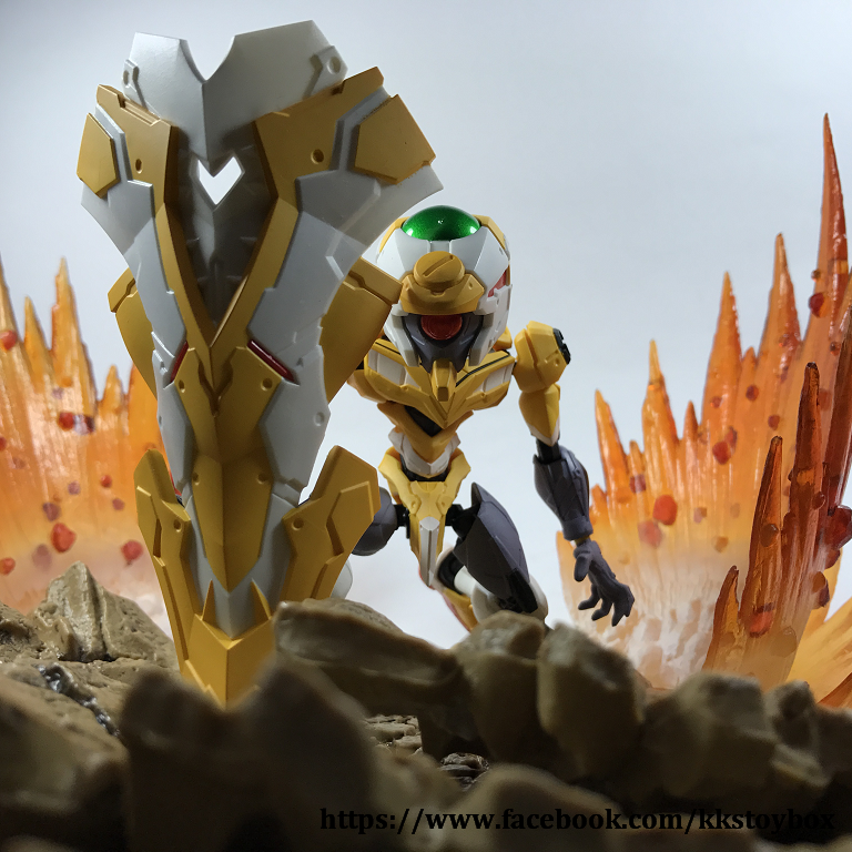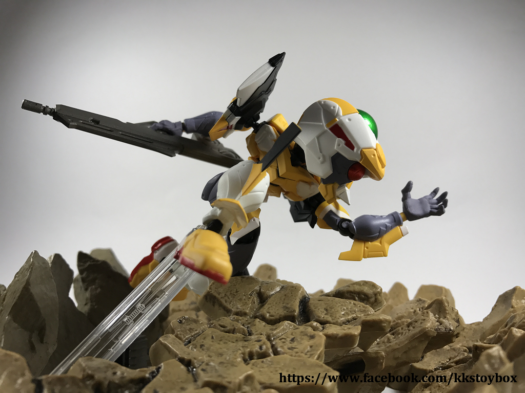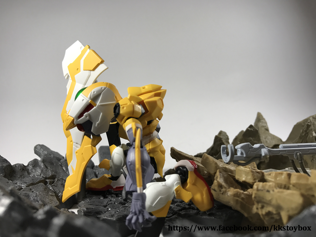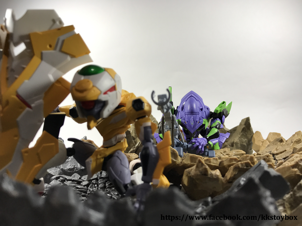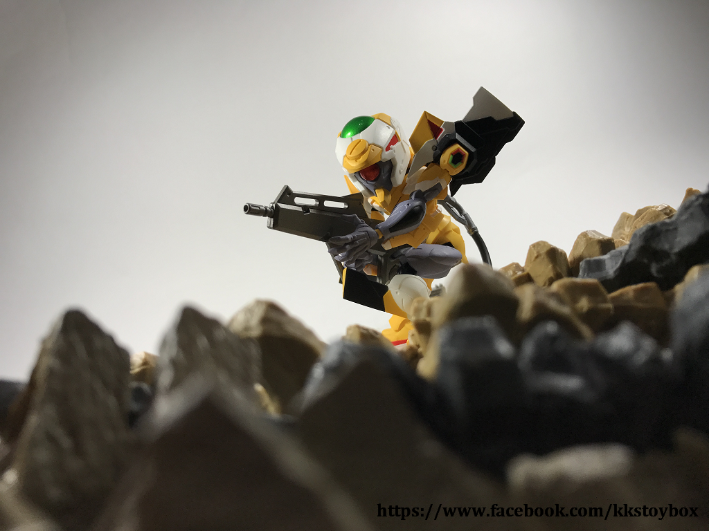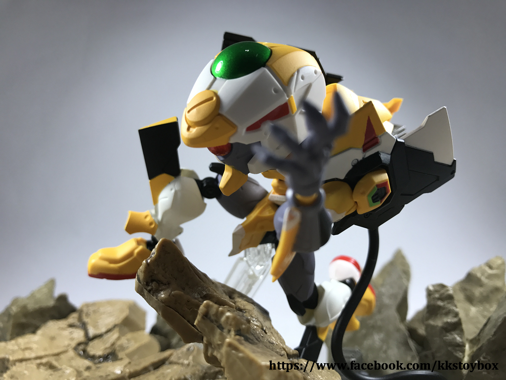 3、連動式地地臺非常有趣,可玩度很高。之前因為只有一臺初號機,地臺無法連動,感受不到其樂趣。這次發現,地臺能夠立體組合,再加上三種長度的支架,讓玩具擺設的自由度非常高。