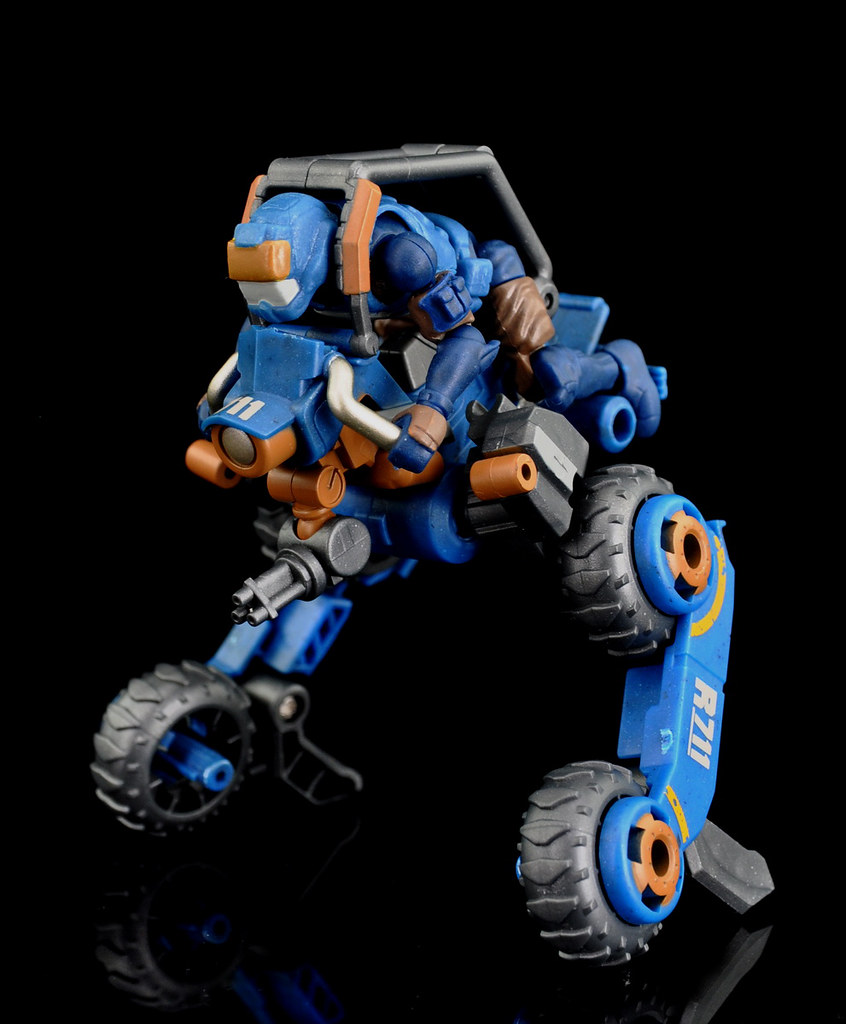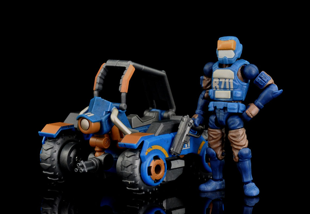R711 SPEEDER MK1r,是《酸雨戰爭》3.75吋系列最受歡迎的載具之一。 R711 SPEEDER MK1r 擁有能夠變形的雙重載具模式,平時是高速移動的全地型車型態,並可變形為輕巧靈敏的雙足步行型態,能輕易穿越各種地型限制;高速移動加上極高的穿越性能,能夠達到快速奇襲對手的打擊手段! 絕對是令對手頭痛不已的一隻奇兵部隊! 組合的內容將包含一台R711 SPEEDER MK1r、駕駛以及手槍。