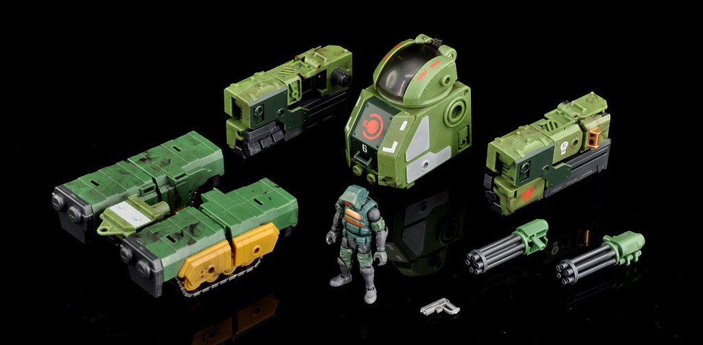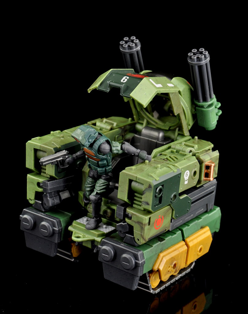 這次B2FIVE 所推出的《酸雨戰爭》1/28 比例系列,保有了1/18 比例的特色造型設定、靈活高可動性與載具變形的玩法,但是尺寸變的更加小巧;並且為了壓低價格,將手續複雜辛苦的寫實的戰損塗裝,改為以鮮豔配色為主的成型色,呈現出與寫實風格的《酸雨戰爭》截然不同的全新氣息。 除此之外,本系列最大的特徵在於保有3.75吋系列的「可動」與「變形」之外,還能夠「互換」! 能夠將不同的機甲彼此交換零件,打造出屬於你的獨特造型~
