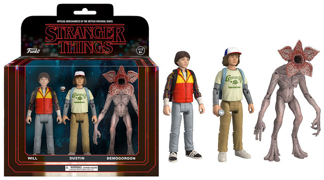 這次,FUNKO 公司有別於過往Action Figure 系列以吊卡的形式推出,這次則是以盒組的方式推出六款「怪奇物語」中登場角色的作品,組合包一(Pack 1)有盧卡斯.辛克萊爾(Lucas Sinclair)、麥克.威勒(Mike Wheeler)、十一號(Eleven);組合包二(Pack 2)則是威爾.拜爾斯(Will Byers)、達斯汀.亨德森(Dustin Henderson)以及來自顛倒世界的怪物(Demogorgon)。