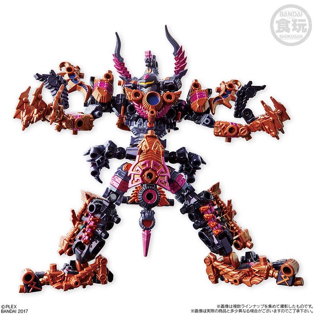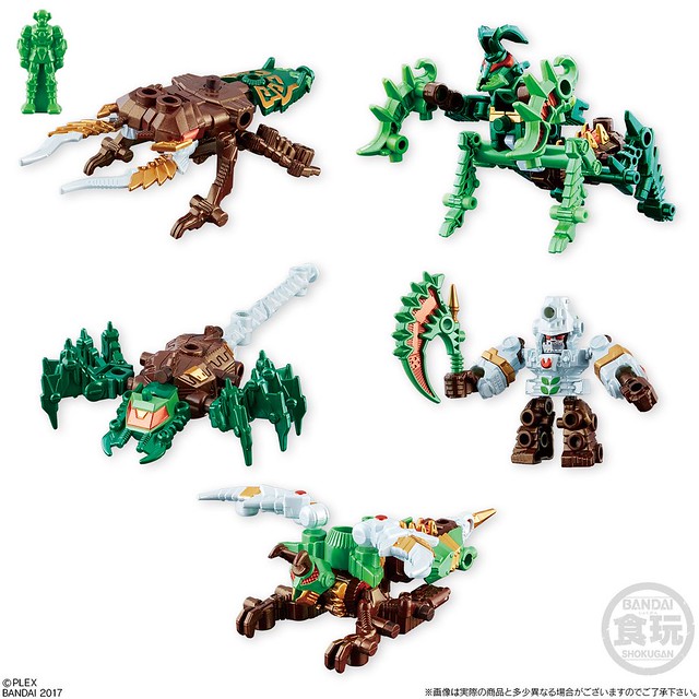 有著像是人類軀體的"精靈(エルフ)"、鍬形蟲造型的"霸王(ドルクス)",以及像是螳螂的"戰爭鬥士(ウォーサイズ)"、"蜘蛛(スパイダー)"、也是有著像是人類造型的"地精(ゴブリン)"還有"大黃蜂(ホーネット)等等六種類的幻聖獸,另外藍色款則是「死亡夢幻守護神(デスムゲンガーディアン)」,有愛的玩具人可以一次購買中箱12小盒包裝,就可以兩種不同配色的"幻聖獸"來搭配出更多元組合把玩,喜愛《無限合體》系列盒玩的玩具人可以參考一下歐!