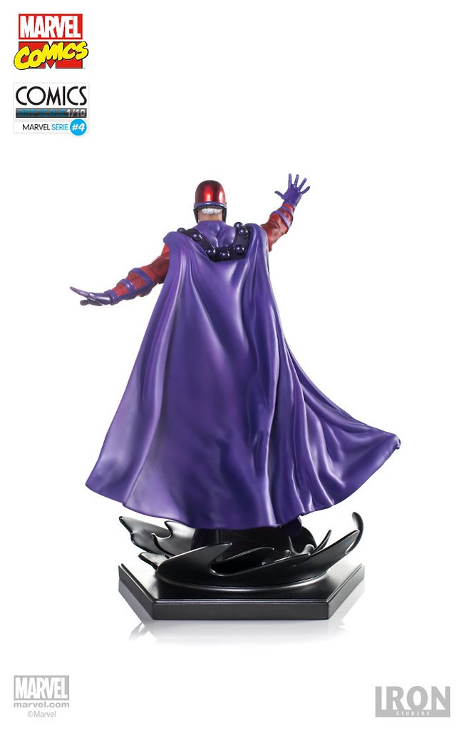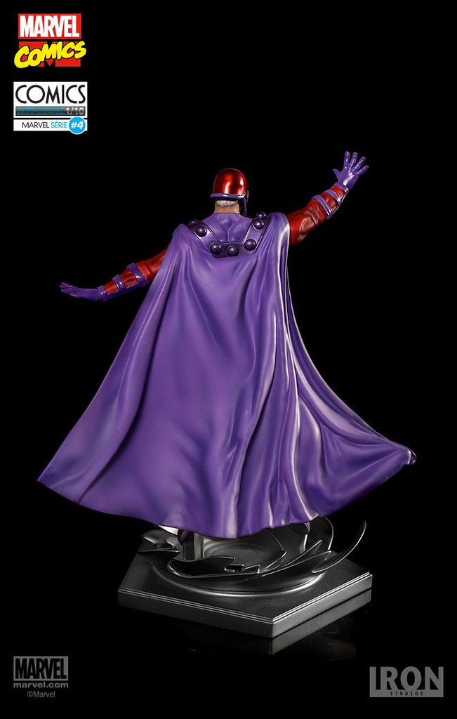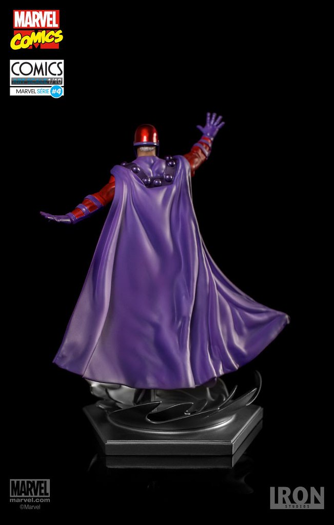 這次的作品採1/10 比例製作,高約22 公分,標準的紅、紫色服裝、飄逸的披風加上凶狠的白眼,將萬磁王不可一世的威壓感完美重現,頭雕部分有戴著防止心靈入侵的頭盔、一頭白髮,兩種版本可以替換,值得一提的是看似雙腳騰空的設計,搭配特效地台彷彿萬磁王真的漂浮在半空中相當精彩啊!!