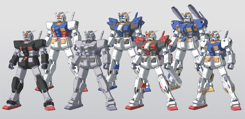 ▼ 鋼彈1〜7號機,涵蓋了不同階段的實驗概念,以及因應不同任務需求的武裝配備,為後來鋼彈家族的發展奠定了基礎。