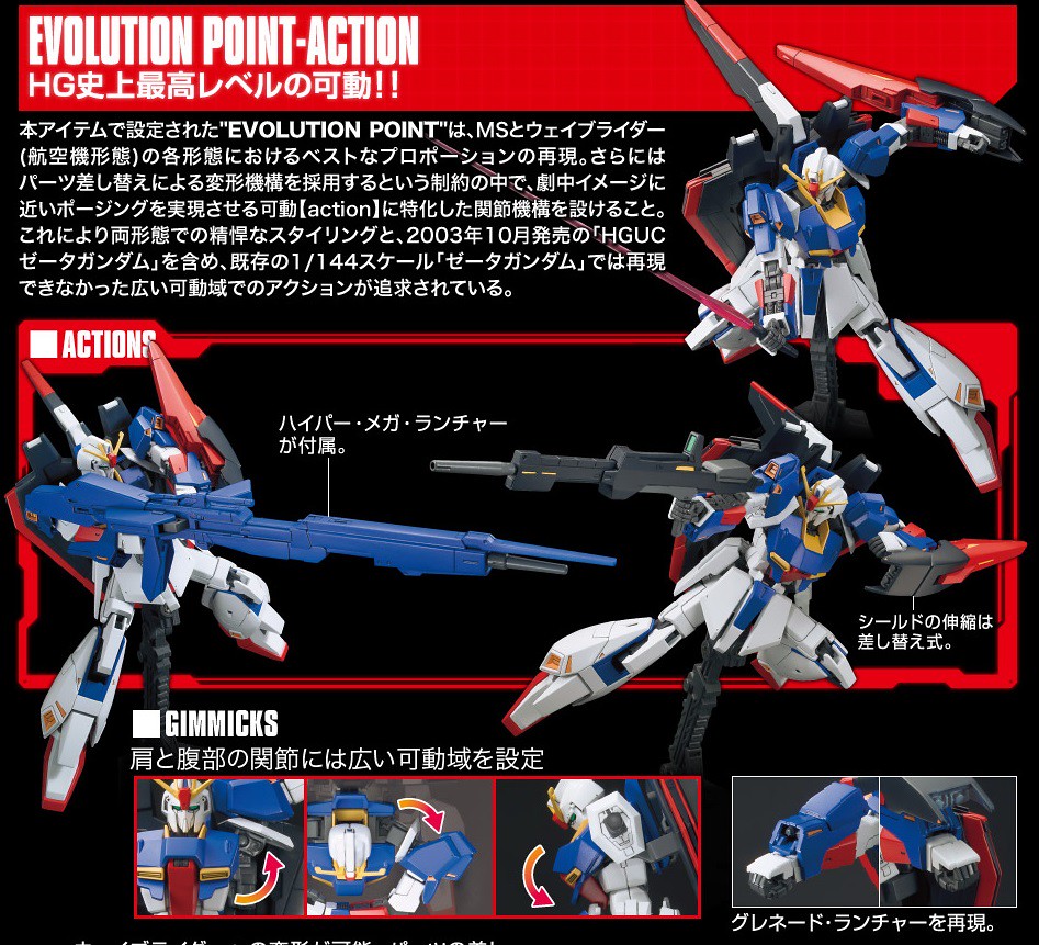 ▼ 迎向鋼普拉40週年新企劃「GUNPLA EVOLUTION PROJECT」第一彈HGUC 1/144 Z鋼彈,以替換零件的方式變型,追求極致可動度和造型完成度。