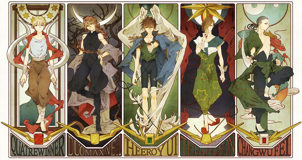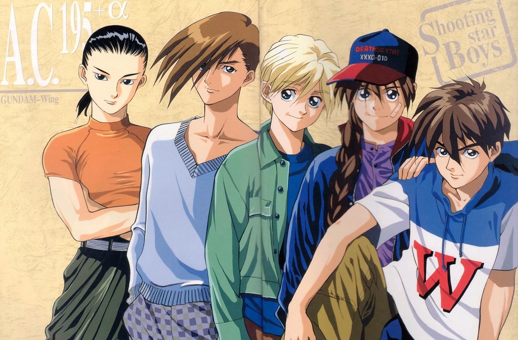 1995年的《新機動戰記鋼彈W》以群像劇的方式展開,讓五個主角都有自己的故事線,進一步強化了角色魅力,再加上全員花美男的設定,整個朝著偶像化路線發展,成功吸引不少女性觀眾的青睞。別的不說,看看以下的美圖,光是W五小強的寫真集和同人誌就比鋼彈機體還熱門,這也算是鋼彈史上第一遭。