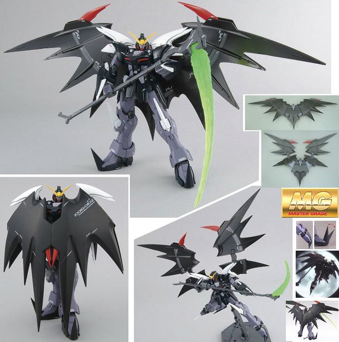 ▼ MG地獄死神鋼彈改,像蝙蝠翅膀的大披風,再加上比機體還高的超大型光束鐮刀,簡直就是死神的化身,和駕駛員迪歐好男人的形象完全搭不起來。
