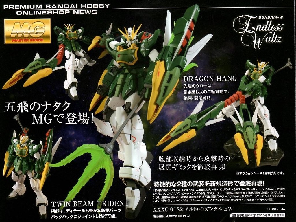 ▼ MG雙頭龍鋼彈改,手持雙頭光束三叉戟,雙臂搭載了能夠當盾牌又可以伸縮的巨型龍爪,某個程度來說,可以說是天龍鋼彈的超越進化版。