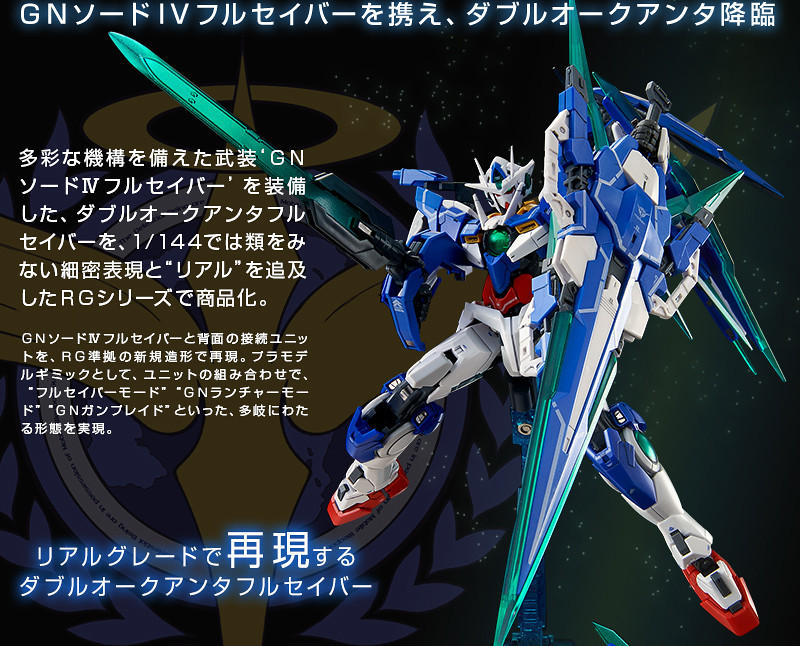 ▼ 主角剎那駕駛的機種包括能天使、00鋼彈、量子型00,共同特色是以刀劍為主的近戰格鬥兵裝。因為衍生機太多了,就以出自《機動戰士鋼彈00V戰記》中的量子型OO全刃式作代表好了,前陣子也在PB魂商店推出了RG版本。