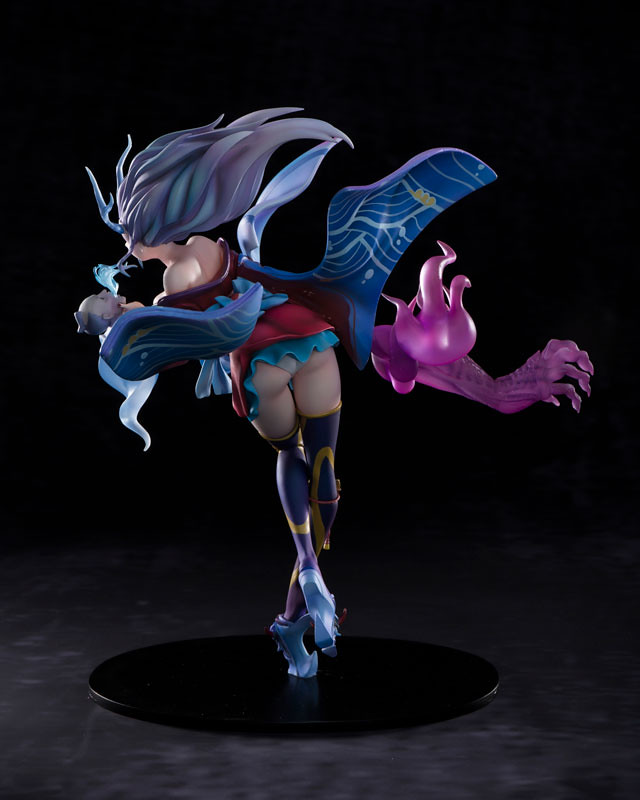 這次茨木童子幻化為女性後身著華麗的和服,為了能夠勾引落單的男性,和服滑落肩下露出吹彈擊破的肌膚,鬼手以及鬼角和被吸食的男性都採用的是可透光的材質來製作,和現實世界的實體形成明顯的區別,所有伸展開的造型全部靠其中一隻造型詭異的鬼臉單齒木屐支撐,為了整體有一種輕盈的感覺來呈現,喜愛《魔物的集會》系列的玩具人可以參考一下歐!
