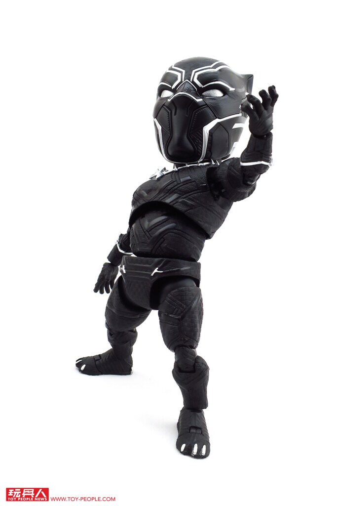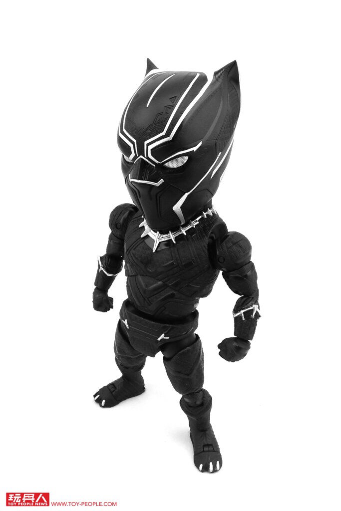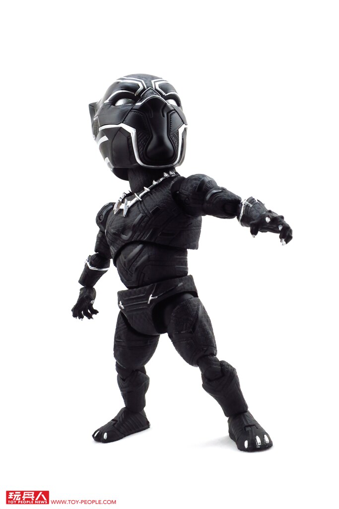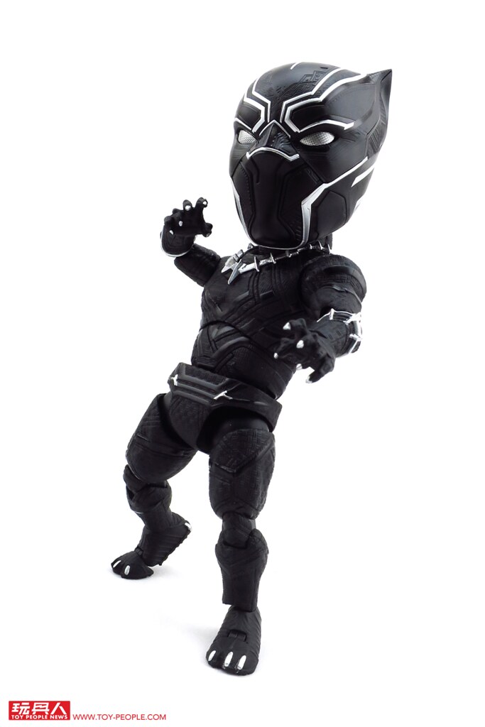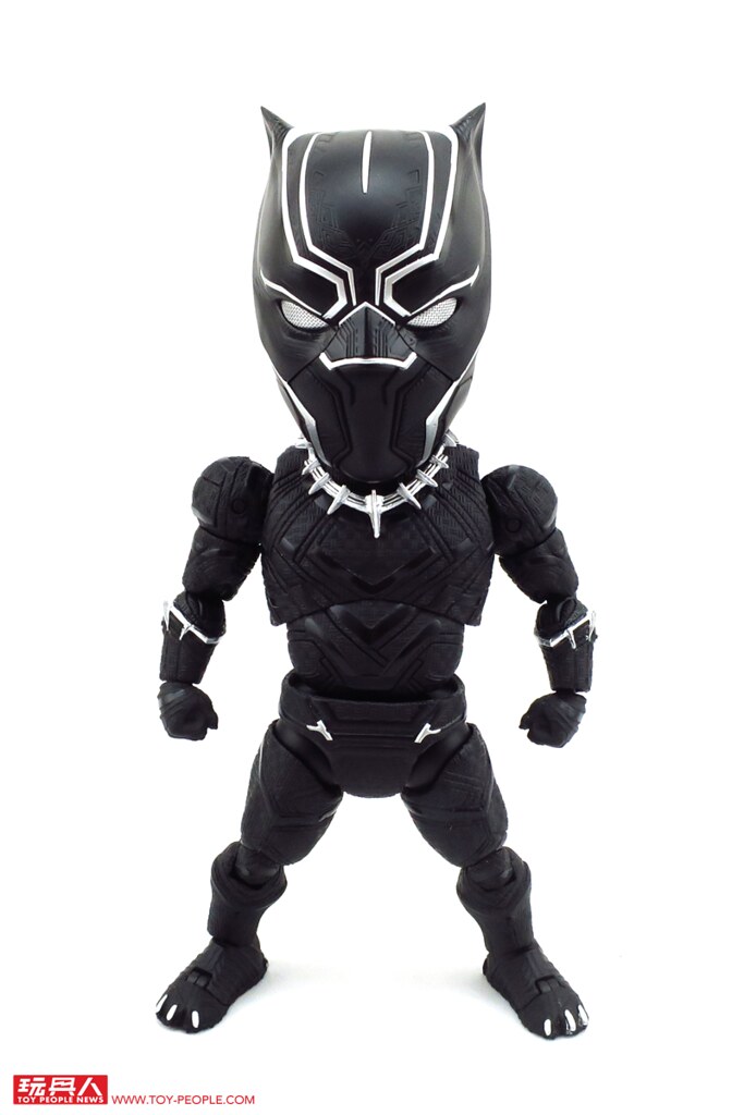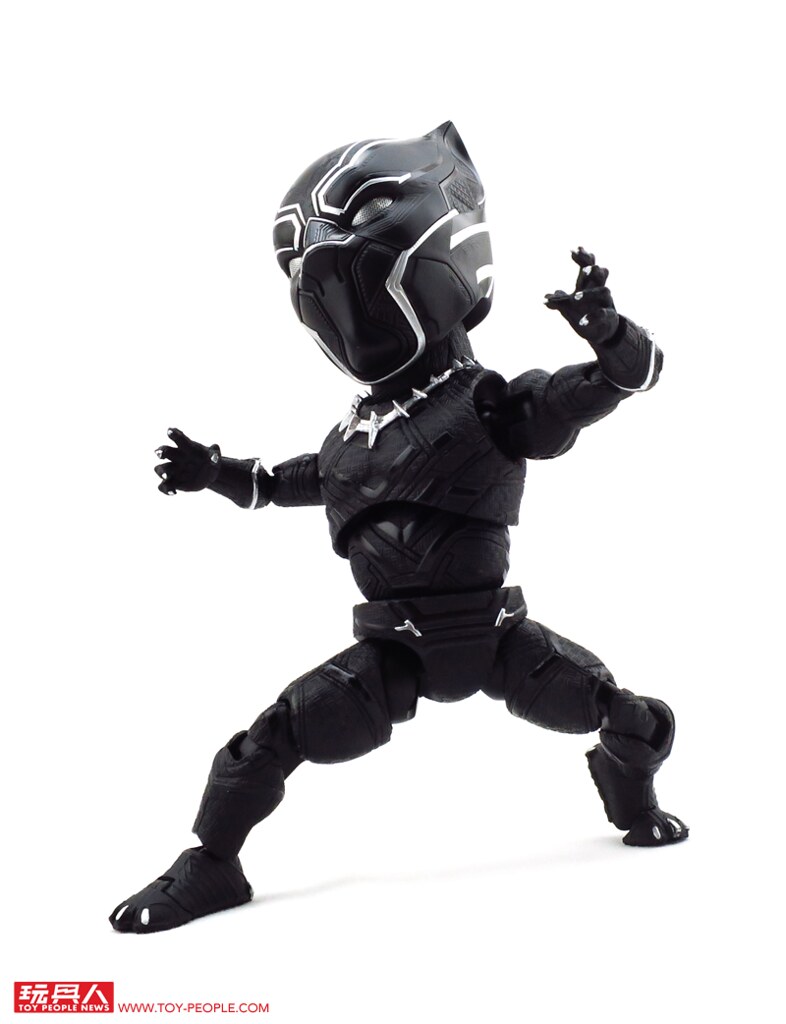 由台灣本土廠牌野獸國精心打造的Egg Attack Action系列(以下簡稱為EAA),採用了六吋的大頭SD比例,搭配豐富的關節設置和細節刻劃,可說是廣受玩家歡迎的收藏系列,而這次的內戰版黑豹,更擁有著究極精緻的戰衣紋路,除了多樣化的替換手部可供裝配,同時也附上劇中那面令人印象深刻的戰損版隊長盾牌,藉以重現機場激戰的一幕,在等待2018年黑豹電影的同時,各位玩具人不妨先來體驗一下這款EAA黑豹漆黑的冷酷魅力吧!