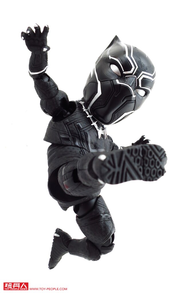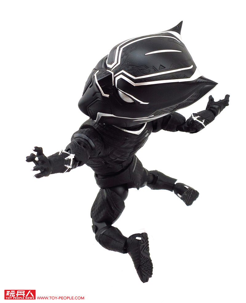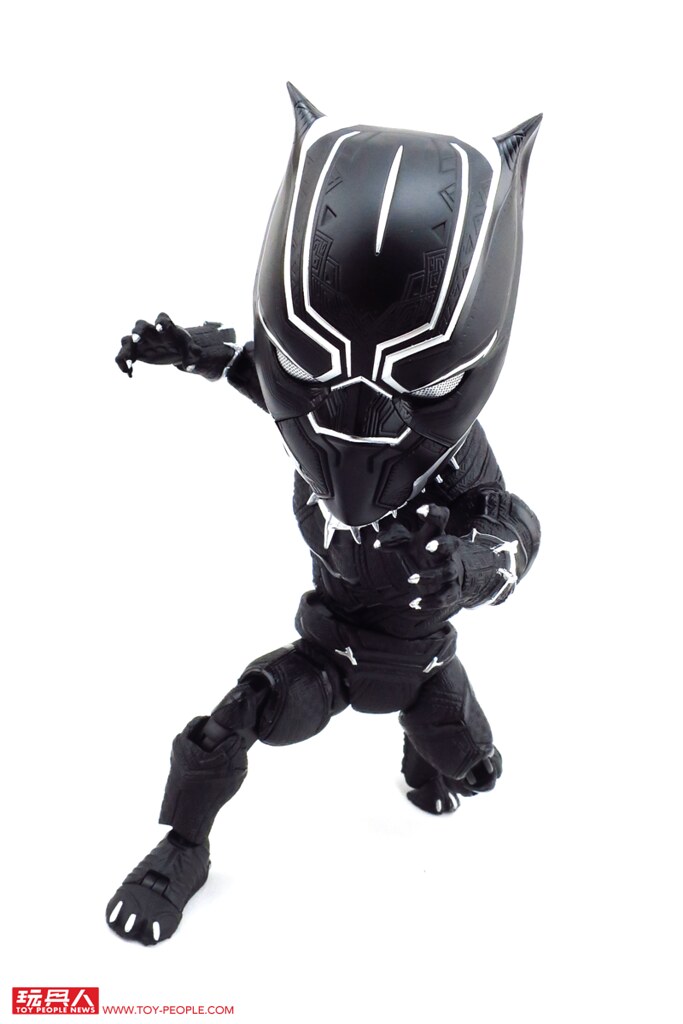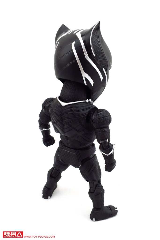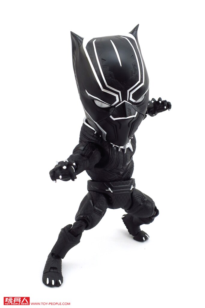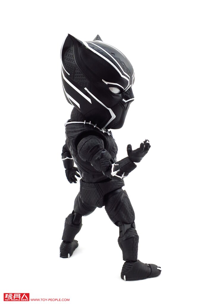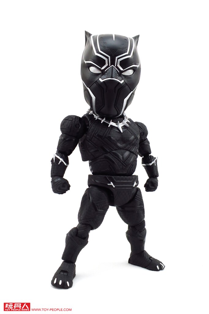 由台灣本土廠牌野獸國精心打造的Egg Attack Action系列(以下簡稱為EAA),採用了六吋的大頭SD比例,搭配豐富的關節設置和細節刻劃,可說是廣受玩家歡迎的收藏系列,而這次的內戰版黑豹,更擁有著究極精緻的戰衣紋路,除了多樣化的替換手部可供裝配,同時也附上劇中那面令人印象深刻的戰損版隊長盾牌,藉以重現機場激戰的一幕,在等待2018年黑豹電影的同時,各位玩具人不妨先來體驗一下這款EAA黑豹漆黑的冷酷魅力吧!