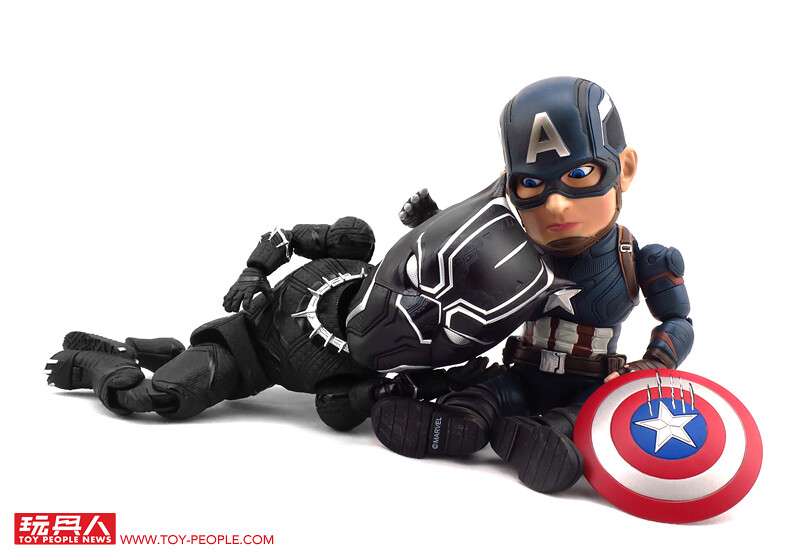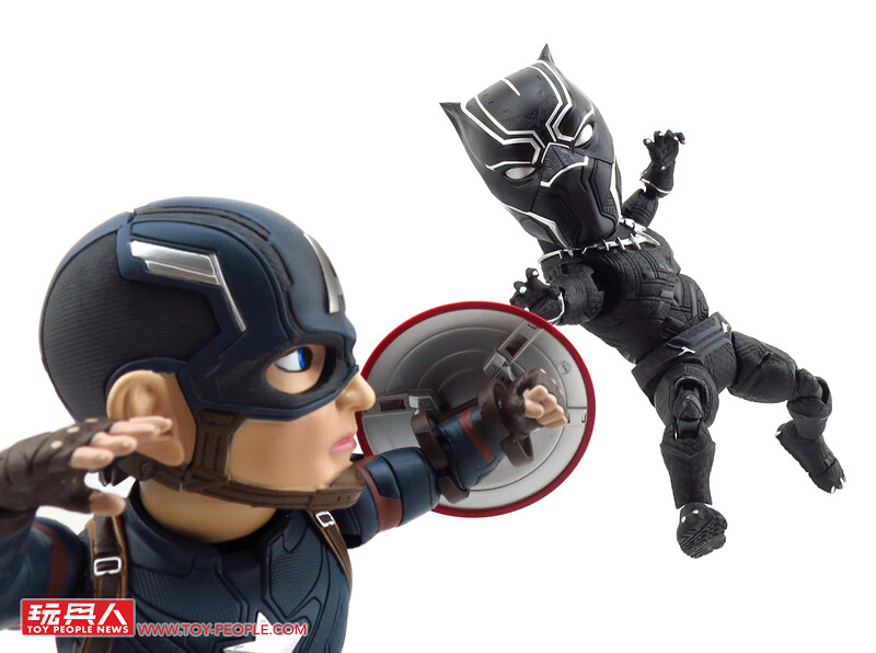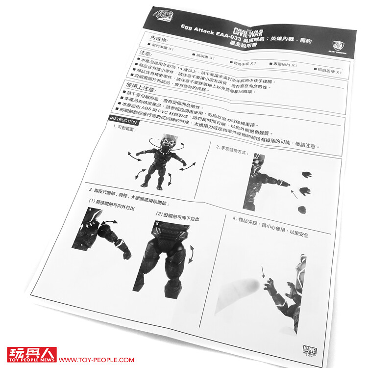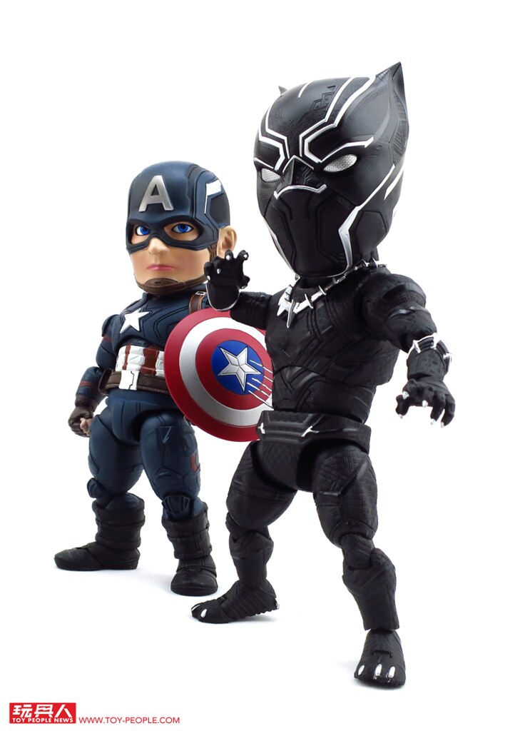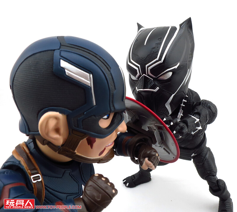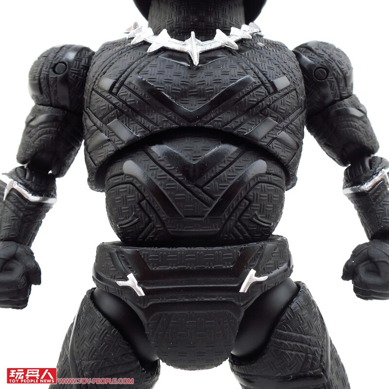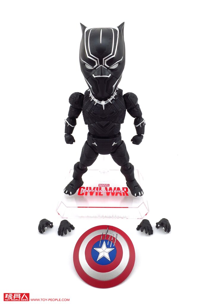 由台灣本土廠牌野獸國精心打造的Egg Attack Action系列(以下簡稱為EAA),採用了六吋的大頭SD比例,搭配豐富的關節設置和細節刻劃,可說是廣受玩家歡迎的收藏系列,而這次的內戰版黑豹,更擁有著究極精緻的戰衣紋路,除了多樣化的替換手部可供裝配,同時也附上劇中那面令人印象深刻的戰損版隊長盾牌,藉以重現機場激戰的一幕,在等待2018年黑豹電影的同時,各位玩具人不妨先來體驗一下這款EAA黑豹漆黑的冷酷魅力吧!