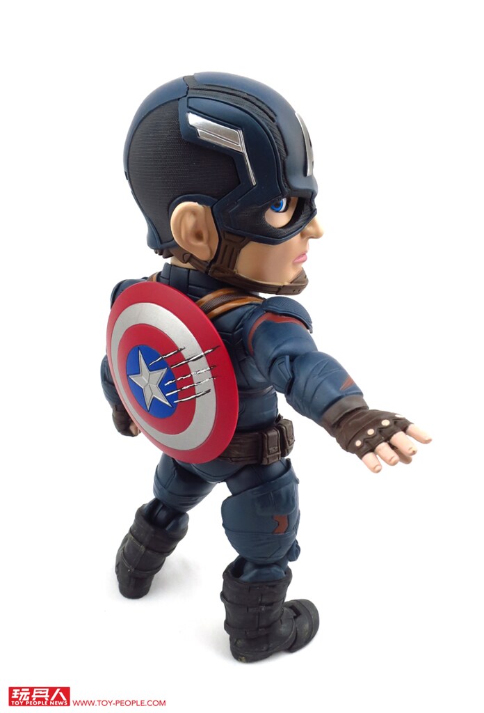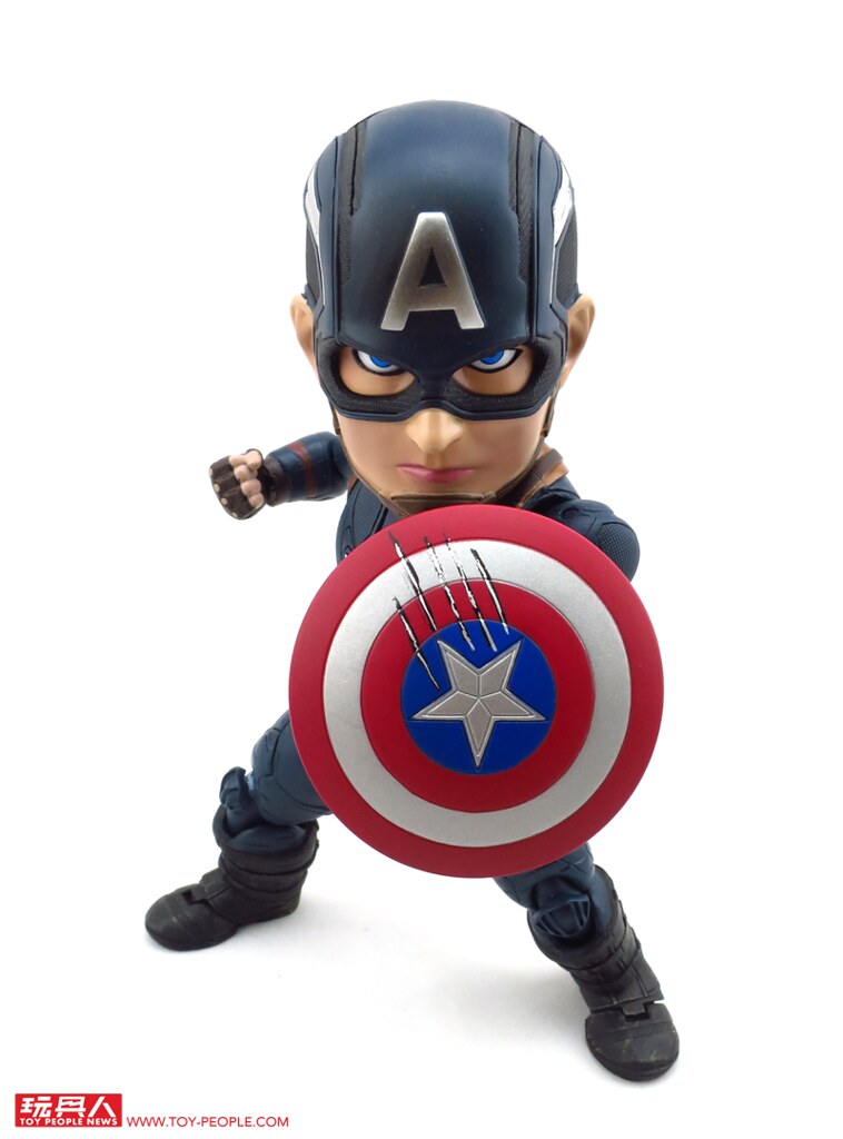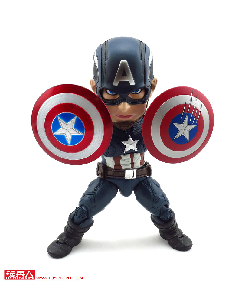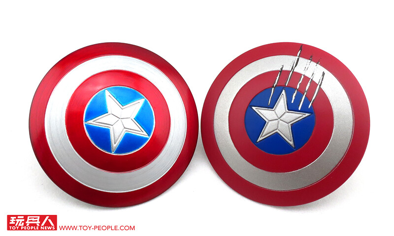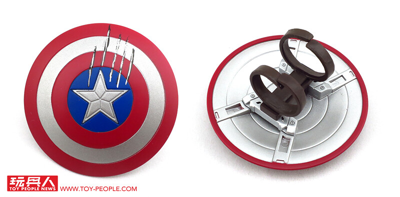 ▼ 附屬的戰損版美國隊長之盾,可還原劇中盾牌被黑豹的釩合金銳爪刮花的經典場景,當然,盾牌內側的帶子也能固定在人偶的手臂上。