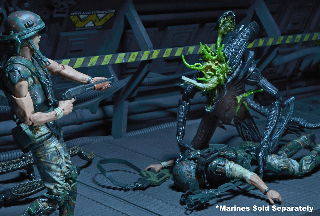 《異形2》導演詹姆士·卡麥隆(James Cameron)導入許多戰爭元素使本片精彩度再提升,眾多陸戰隊跟異形戰士對抗,以及最後蕾普莉(Ripley)與異形女王的「母愛大對決」都非常經典!這次NECA 收錄的人類都是《異形2》裡的女豪傑,蕾普莉和瓦茲奎茲,蕾普莉是撐起整個異形本傳的女主角,瓦茲奎茲則是比男人還要強悍的女戰士,她總是拿著一把巨型機槍在隊伍的最前面,相信給不少玩具人留下深刻的印象!!