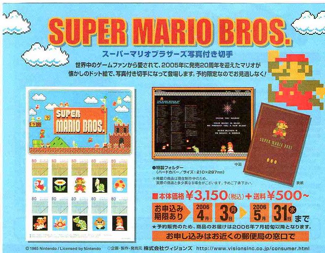 ▼ 曾於2006年發行的超級瑪利歐兄弟 20週年紀念郵票
