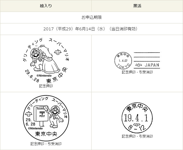 日本郵局(日本郵便),宣布將與世界知名的電玩公司「任天堂」合作,推出「超級瑪利歐兄弟 × 日本郵政局」主題郵票,全套一共10張,每張¥82 日圓,小全張(全套)售價¥820 日圓,預計2017年6月28日於日本全國郵局與日本郵便的網路商店「切手SHOP」限定發行。