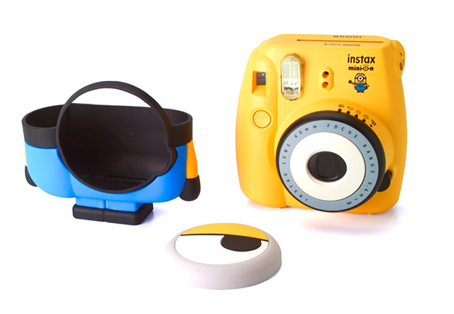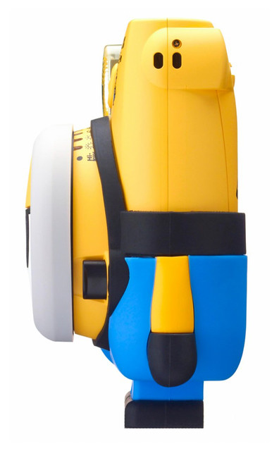 Fujifilm 小小兵 instax Mini 8 拍立得相機,機身將採用小小兵招牌的黃色配色,並在機身上方、後方印有小小兵圖樣;配件附屬了特製的藍色吊帶褲腳架,穿上之後就能完整呈現小小兵的造型,也能當作腳架使用,超可愛! 另外,相機的鏡頭蓋蓋上之後,能夠讓小小兵的眼睛呈現出另一種經常出現的「死魚眼」造型,彷彿就像是在放鬆休息的模樣,與打開鏡頭蓋之後張大眼的模樣擁有截然不同的逗趣反差!:D