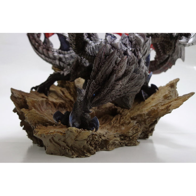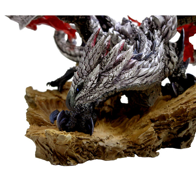 這次「Creator's Model 天彗龍 巴爾法魯克」是由日本名造型家 大山龍擔任兼修、古市龍也負責原型製作。作品雕塑出天彗龍從空中高速墜地的場景,地表被震出巨大凹陷讓人感受十足魄力。被覆全身的銀色鱗甲不但擁有驚人的細節,透過多層次的塗裝彷彿鏡面般反射。伴隨著巨大翅膀的是令人恐懼的紅色龍氣,以透明材質製作的龍氣特效更能重現那不祥的光芒!