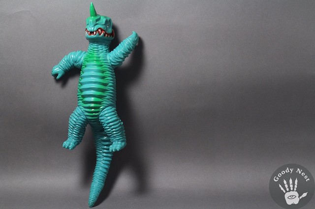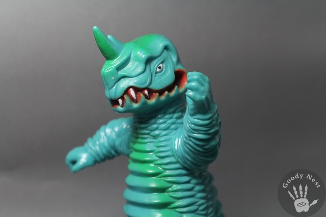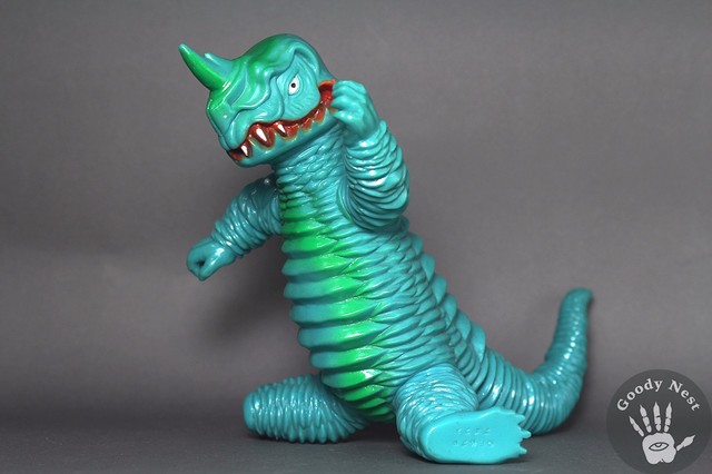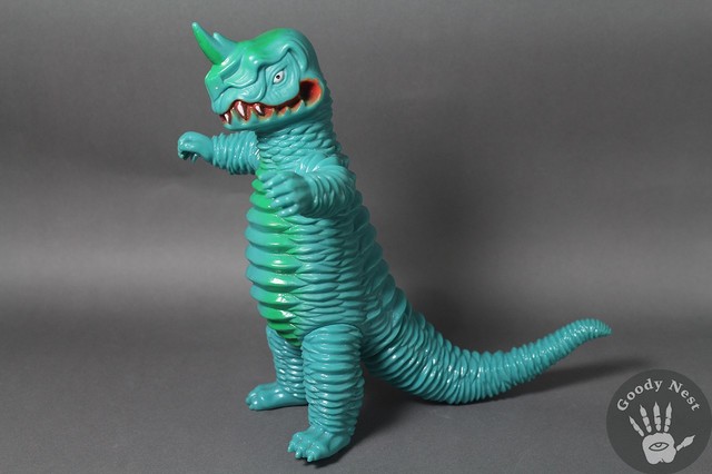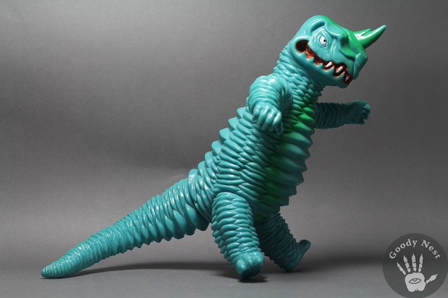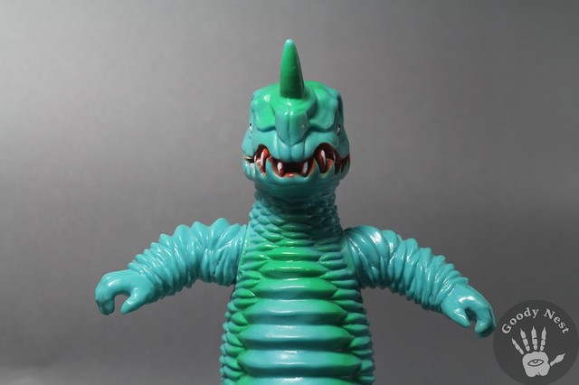 本座外型保留了最早1966年電視劇播出時的怪獸外型,怪獸特色的地方一併呈現,保括頭上的尖角、巨大的咧嘴,還有身上古代爬蟲類的紋路。