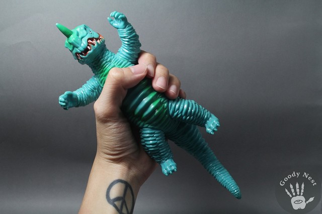 本作在材質上屬於硬膠,硬膠怪獸是早期玩具的特色之一,現代以軟膠為最常見的主流款式。因此硬膠的手感相當獨特,輕巧卻又硬挺,但仍保有塑膠的韌性。配合可動關節與身體線條的刻畫,上手的感覺相當不錯。