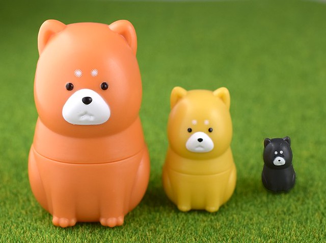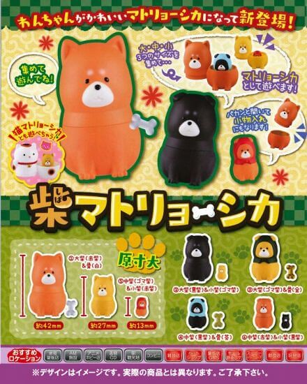 之前就以超人氣動物"柴犬"為題材推出過「拉扯の柴犬」、「柴犬4」、「幸運柴犬」、「柴犬特選」和「嘻戲柴犬」等等多款"柴犬"主題轉蛋,這次把可以層層包覆的趣味玩具「俄羅斯娃娃」轉化成柴犬款,將預計推出有六種類的柴犬俄羅斯娃娃作品可以收藏,以大、中、小三種不同尺寸的柴犬來呈現,有的打開是骨頭配件,喜愛可愛動物柴犬的玩具人可以參考一下歐!