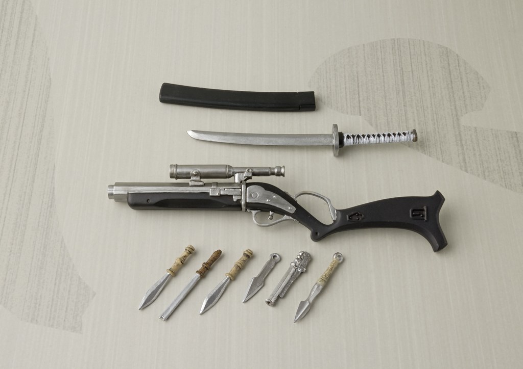 這次的作品高約17 公分,一身全白的裝束更凸顯了銀色的鎧甲,頭盔上的瞄準鏡能移動,小腿的黑色護甲上也能放置各種暗器,搭配附有可拆卸導彈的噴射背包,真的非常多值得玩味的細節~在配件方面跟經典配色版的一樣,日本武士刀、刀鞘、衝擊波步槍、各種飛鏢等等,一擺出來就充滿霸氣,又是款超值得入手的經典作品啊~~