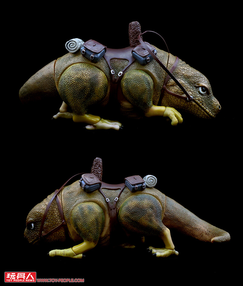 本次的溼背獸,是以搪膠玩偶的形式製成,除了細緻的鱗片刻劃,在頸部、四肢、腳掌及尾部也均設有關節可調整姿勢及平衡,可愛的大塊頭體態真是讓人愛不釋手,喜愛溼背獸和沙漠兵的帝國愛好者,千萬不要錯過這個大漠騎兵的組合!