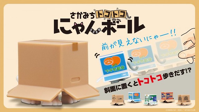 日本知名的搞怪轉蛋廠牌「奇譚俱樂部」,全新推出標榜"不需要發條"、"不需要電池"就可以前進的「さかみちトコトコ(斜坡小碎步,暫譯)」系列,繼第一彈「行走企鵝」之後,第二彈宣布將推出「走路紙箱貓」!