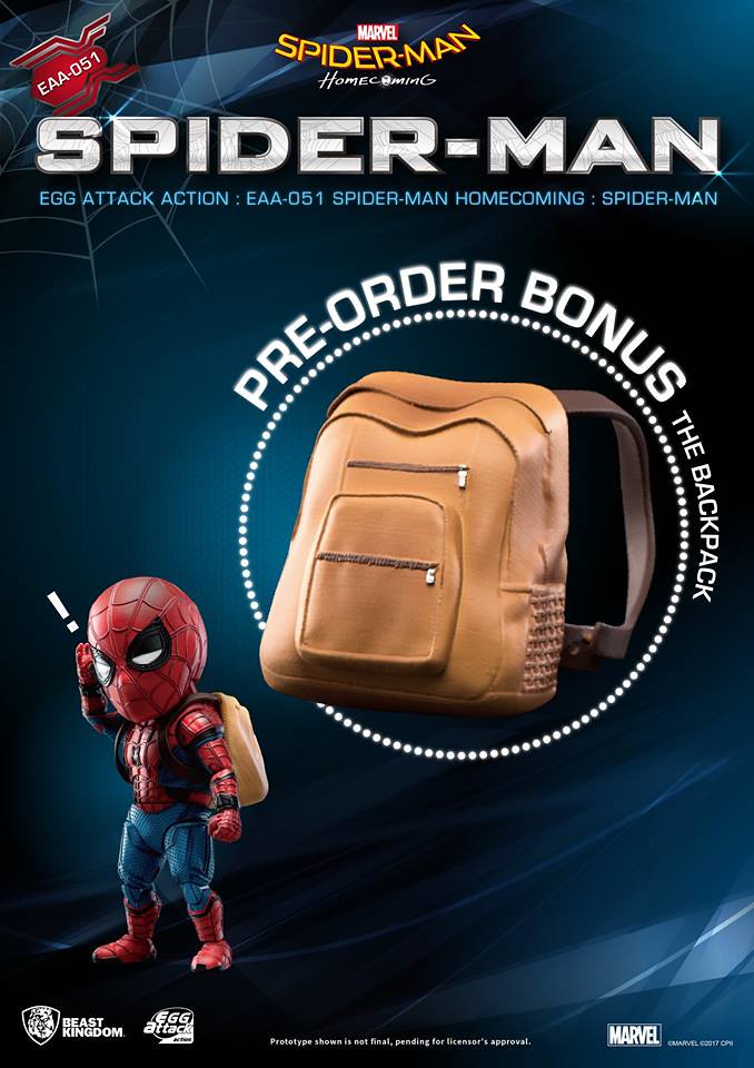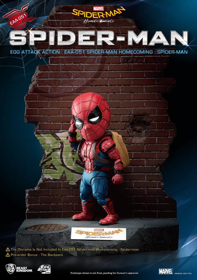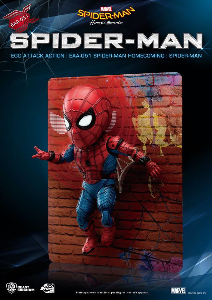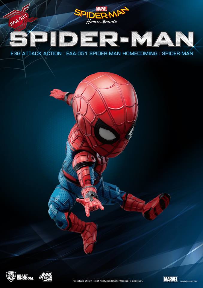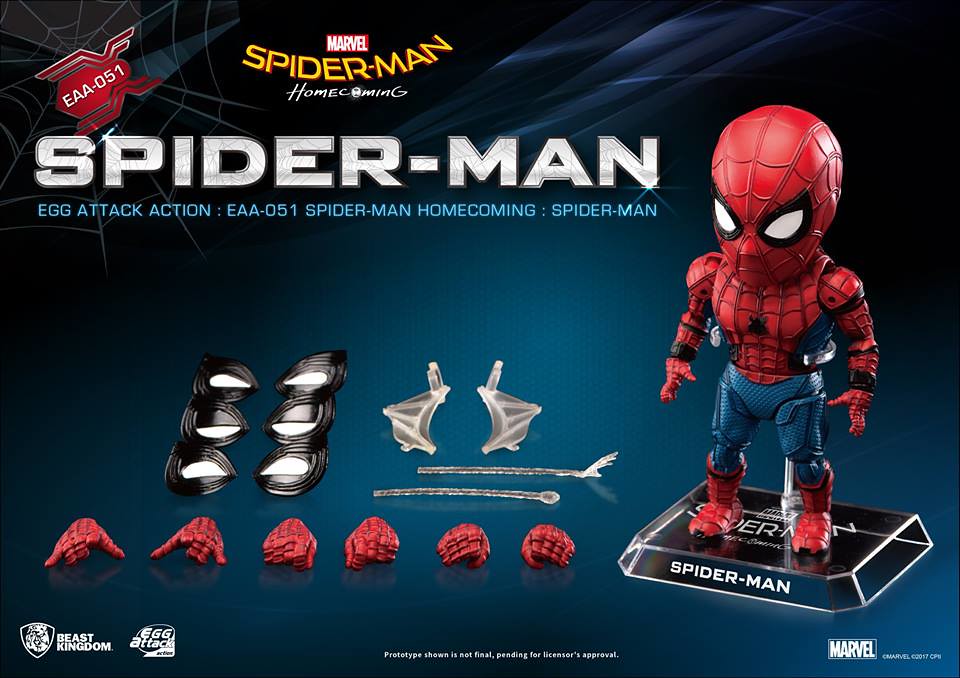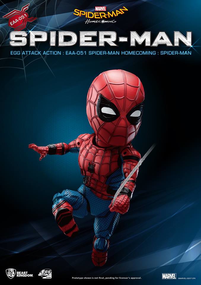 知名臺灣本土玩具品牌野獸國(Beast Kingdom)公司繼日前推出電影星際異攻隊2 的「星爵」(Star-Lord)的作品之後,又將在旗下Egg Attack Action 可動公仔系列推出最新MARVEL 電影「蜘蛛人:返校日」(Spider-Man: Homecoming)版本的「蜘蛛人」(Spider-Man)可動人偶作品。