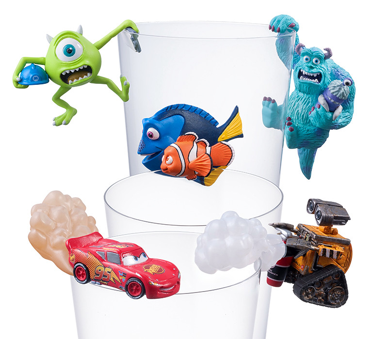 這次的陣容可說是「星光熠熠」啊~囊括了皮克斯旗下四部人氣動畫電影《怪獸電力公司》(Monsters, Inc.)、《海底總動員》(Finding Nemo)、《汽車總動員》(Cars)跟《瓦力》(WALL-E),總共有5 種款式可以搜集: