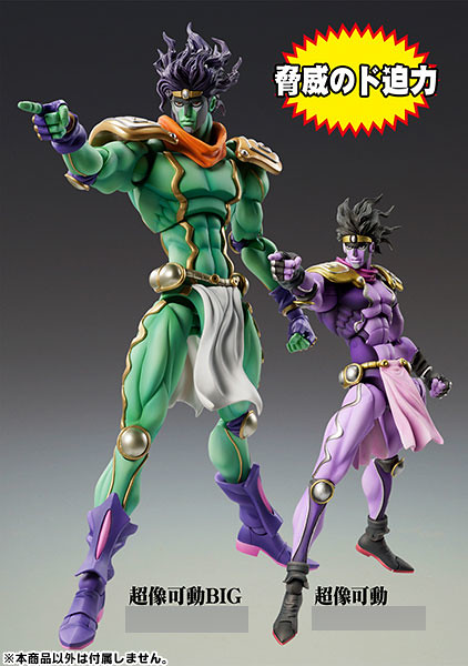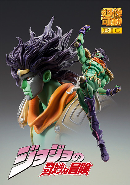 2017年7月11日新增官方宣傳圖片與販售相關資訊,劇中故事第三部時主人翁「空条承太郎」初登場的時候是高中生的身份,年齡大約是17歲,後來獲得替身「白金之星(スタープラチナ / Star Platinum)」,白金之星擁有著極為強大的力量,能輕易折彎鐵條,也有極高的動作精密度,可以接住槍彈或是描繪照片中的蒼蠅等等,這次超像可動BIG作品附有吶喊顏部配件可以替換,以及多款不同姿勢手首配件等等,對《JoJo的奇妙冒險》有興趣的玩具人千萬別錯過了啊!