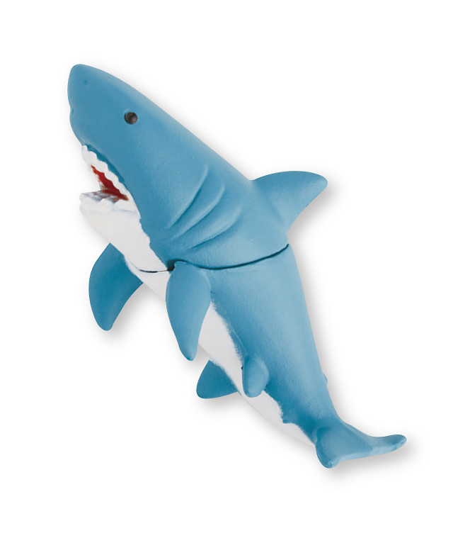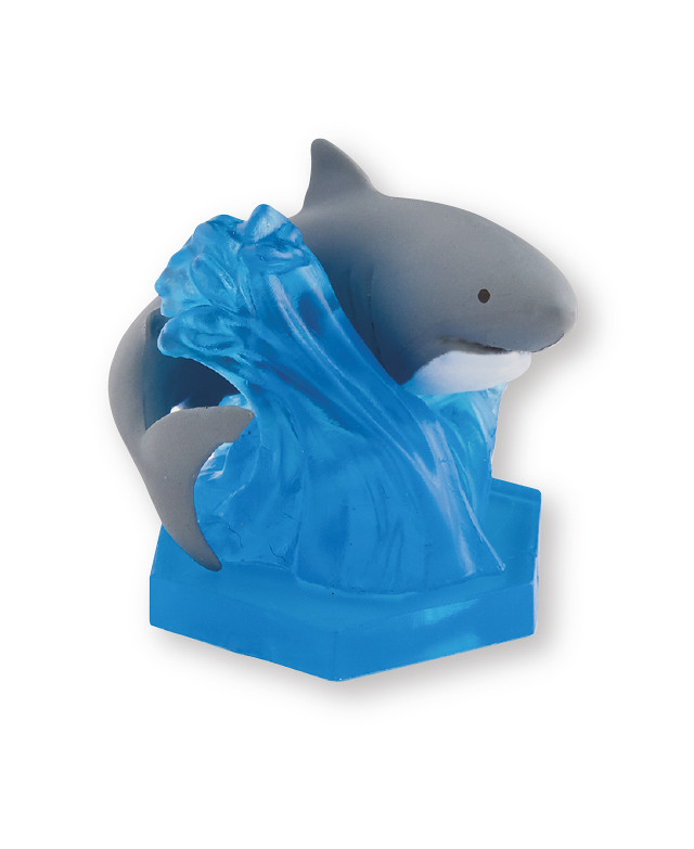 維持過往指上系列的作品,這次「指上的鯊魚」一樣會以兩種不同造型(水面冒出姿勢、指上的姿勢)的形式推出,一款是可拆成兩半的鯊魚搭配沖出水面的水花配件,另一款則是彎曲的鯊魚搭配著特殊造型的水花配件。兩款不同造型的作品都會推出灰色、天空藍以及水藍色三種配色。喜愛指上系列轉蛋作品的玩具人不要錯過囉!