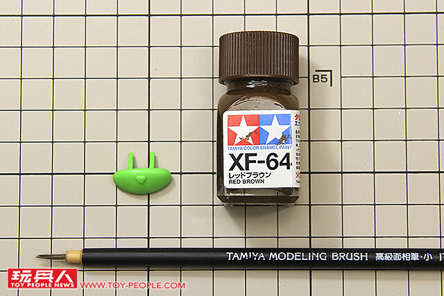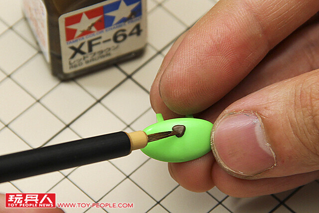 ▼ 再來要將貼紙的部分用補色方式進行,我們準備了紅棕色消光琺瑯漆。消光的漆種其實十分適合筆塗作業,在完成後的筆觸也會減少許多。