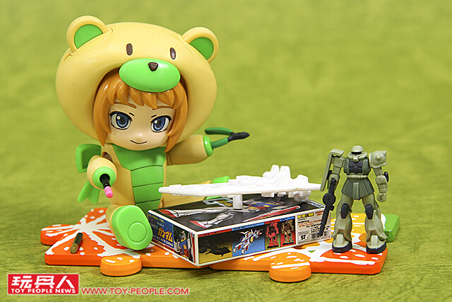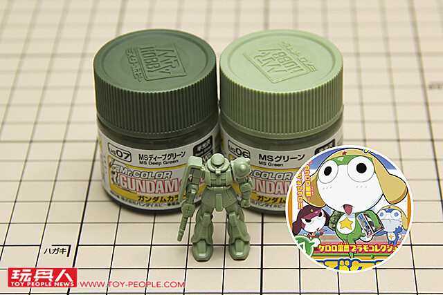 ▼ 本體製作完成後也可以利用各種配件裝飾模型喔!!這裡使用的是萬代販售的KERORO軍曹幼年期模型中附帶的迷你薩克II,搭配的顏色就以標準薩克II配色為主。