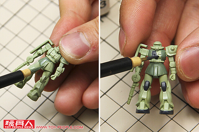 ▼ 可以用力按壓筆頭將顏色擠出後使用面相筆做塗裝。