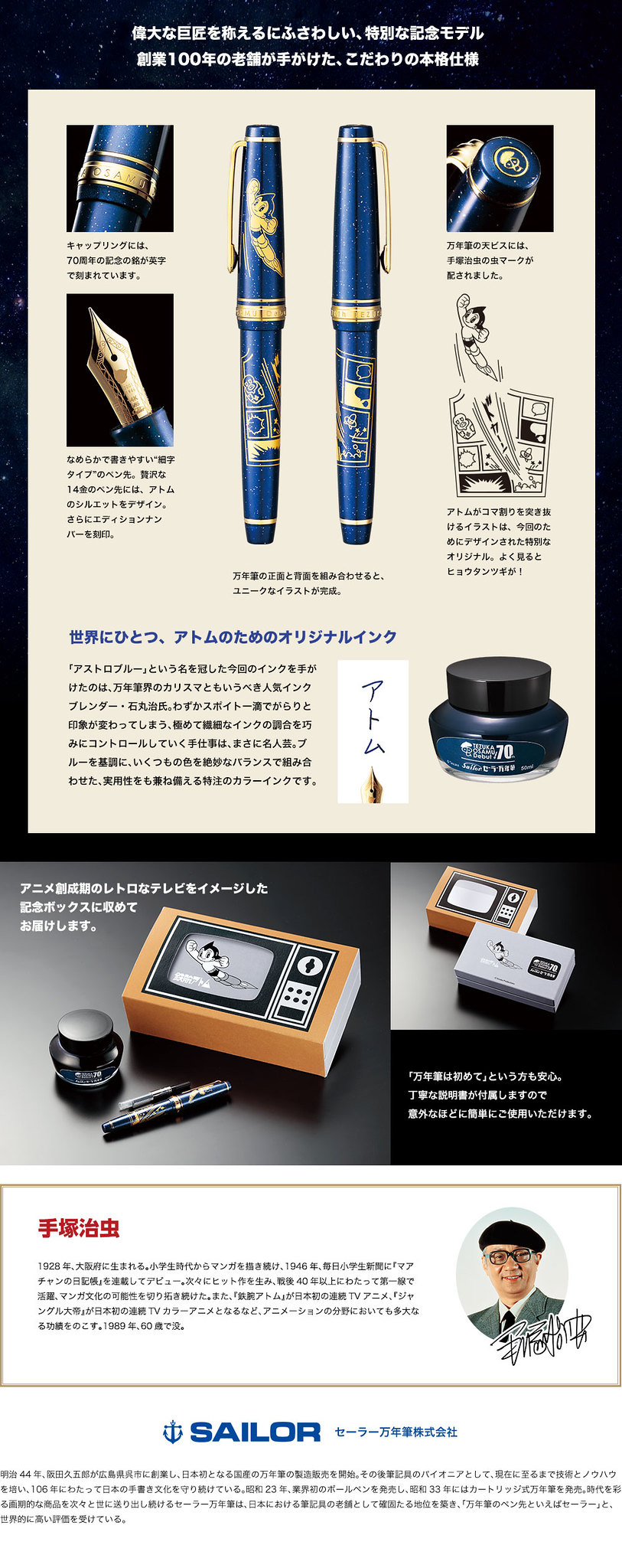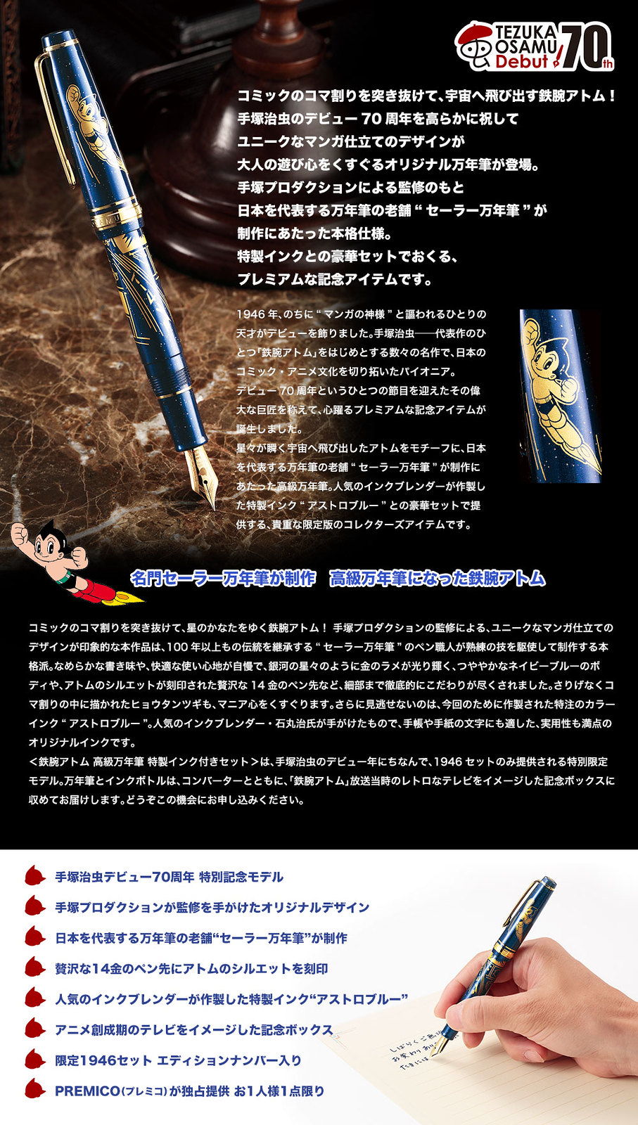手塚治虫デビュー70周年記念 鉄腕アトム 高級万年筆 特製インク付きセット